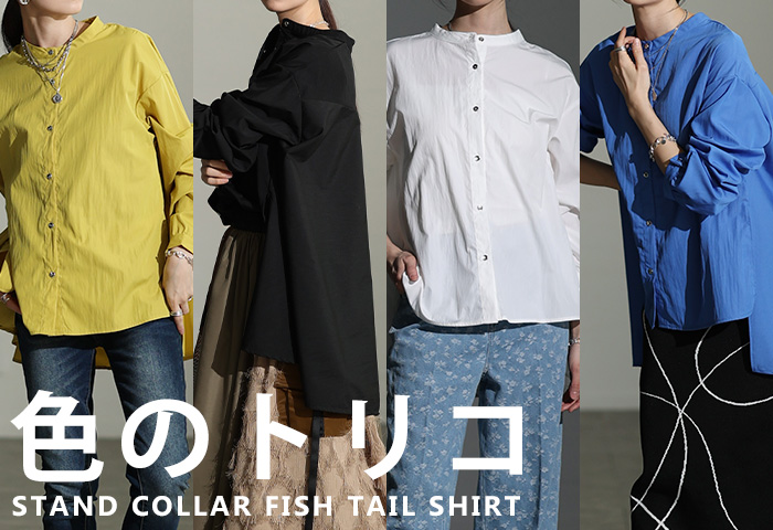 スタンドカラーフィッシュテールシャツ【2月4日20時販売新作】