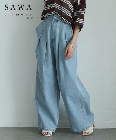 大人カジュアルなダブルタックデニムバギーパンツ【7月3日20時販売新作】