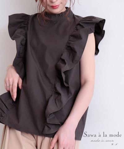 流れるアシンメトリーフリルのシアーブラウス【6月25日20時販売新作】