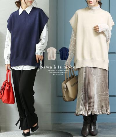 ハンサムライクなノースリーブサマーニットベスト【7月2日20時販売新作】