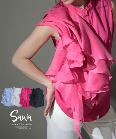 ヒトクセで華やぐティアード風ノースリーブブラウス【5月5日20時販売新作】