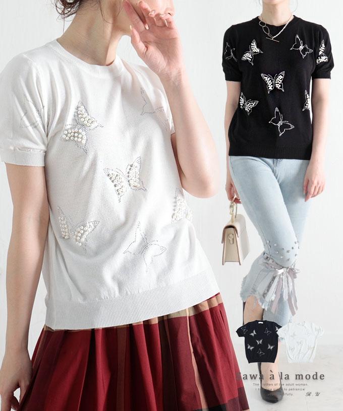 艶やかパールのパフスリーブニットトップス