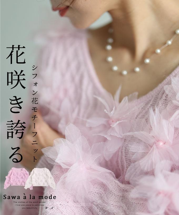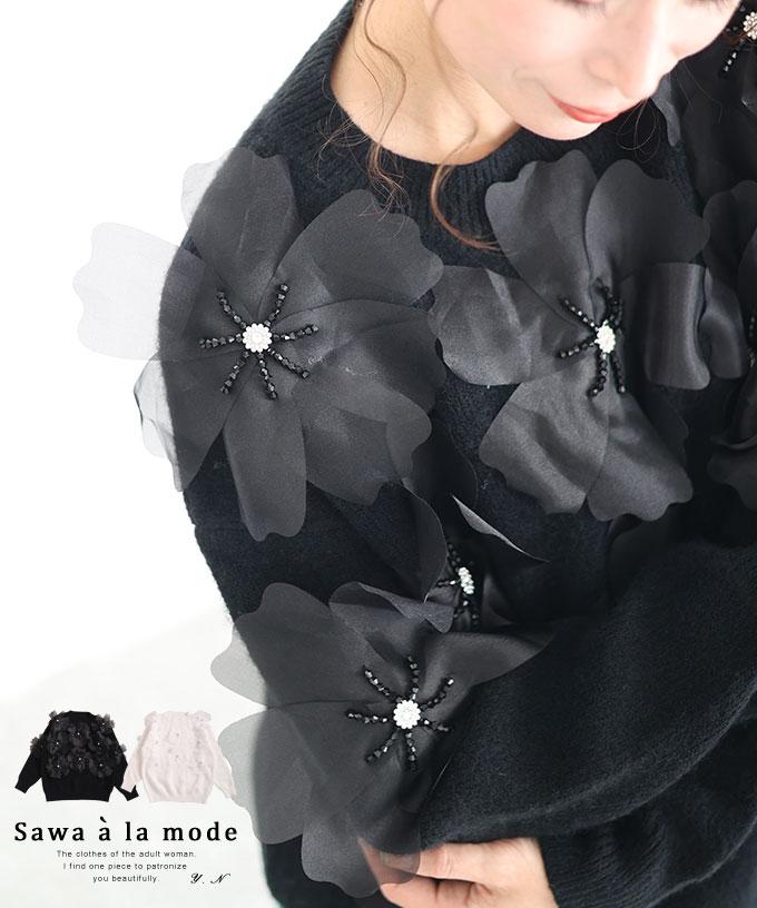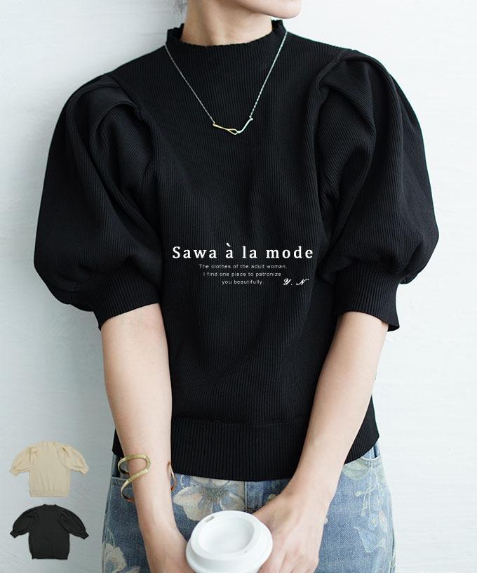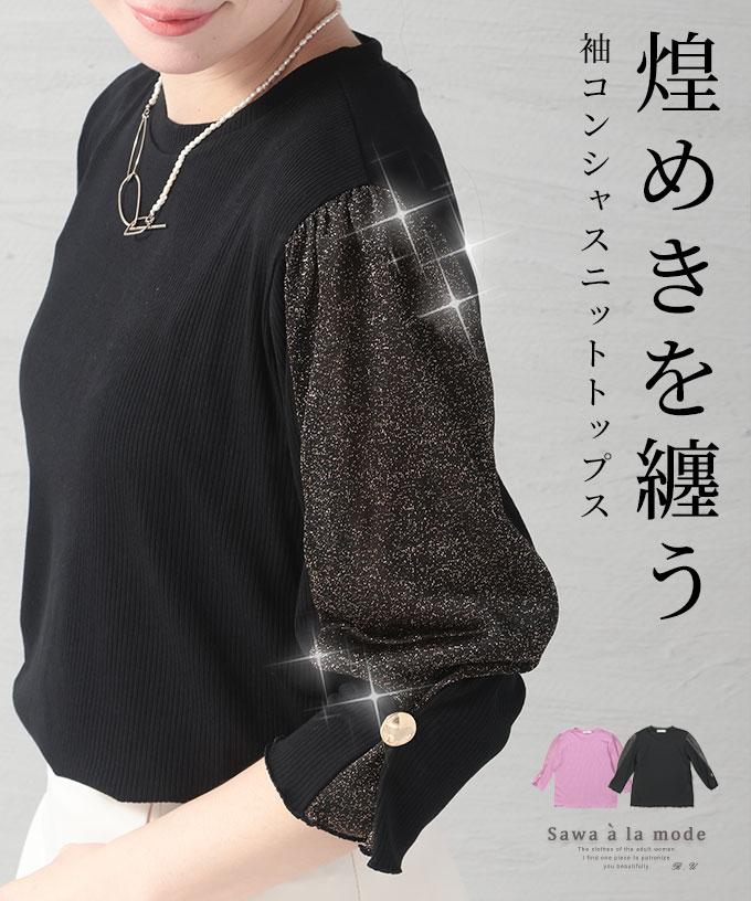• 艶やかパールのパフスリーブニットトップス
