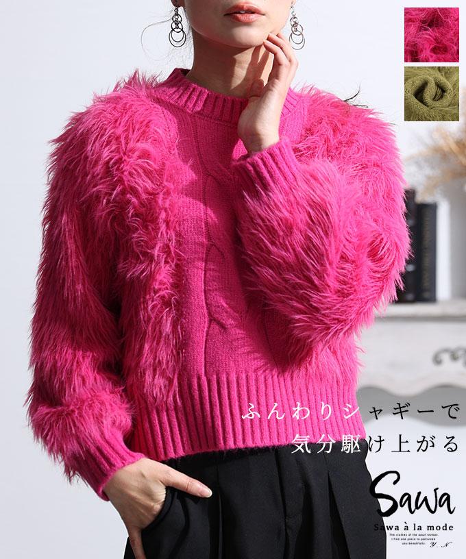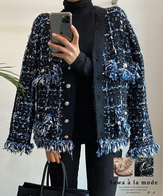 • ジャガード×ファーボーダーニットカーディガン【12月11日20時販売新作】