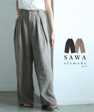 艶めくサイドパール付きワイドパンツ