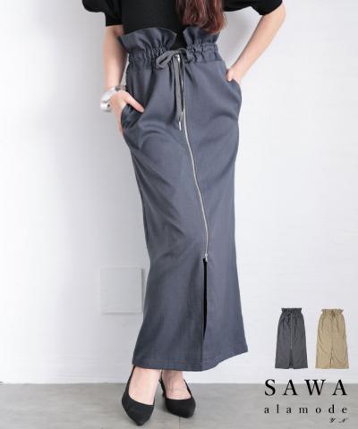 サイドスリット入りのレイヤード付け裾