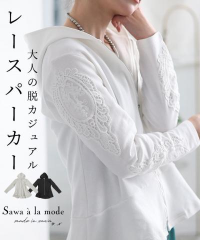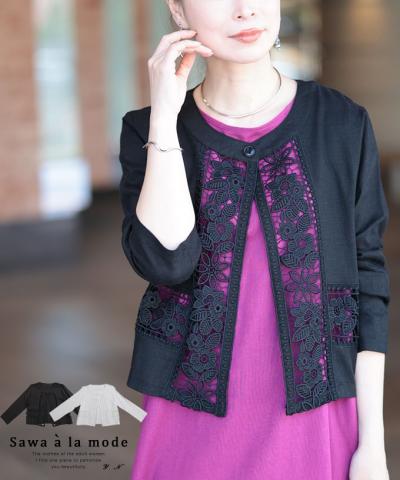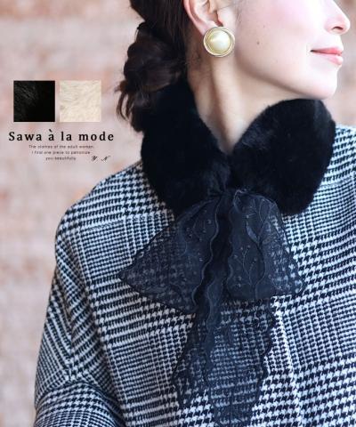 上品に首元を隠してくれる刺繍レース付け襟