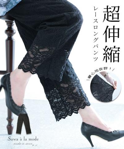 暖かな裏フリースのレースワイドパンツ