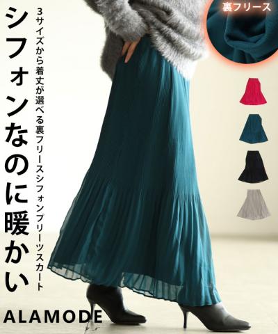 裏フリースの暖かシフォンプリーツスカート