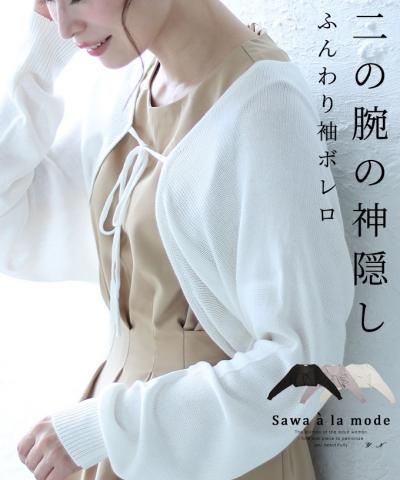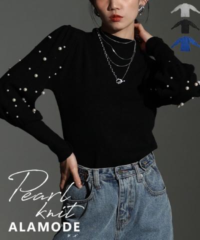 艶やかパールのパフスリーブニットトップス
