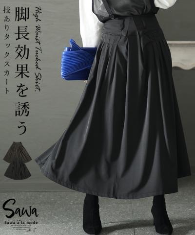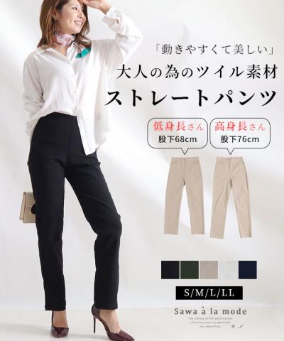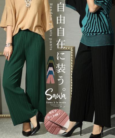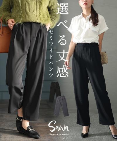 裾が床につかないストレッチタックワイドパンツ