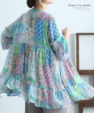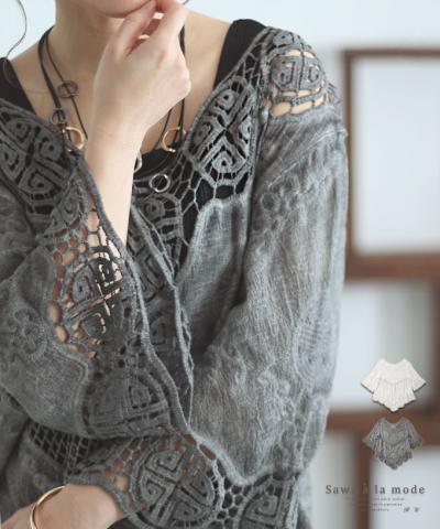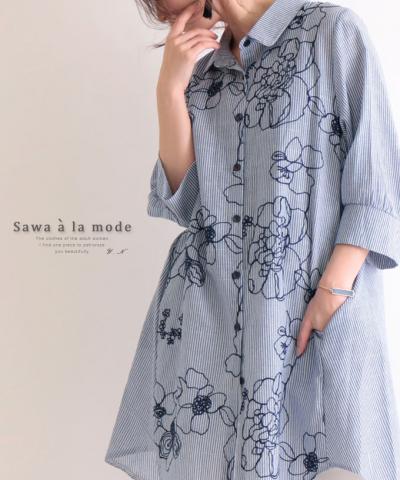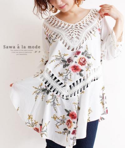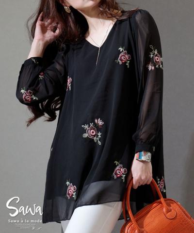 花刺繍舞い散るシアーチュニック