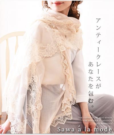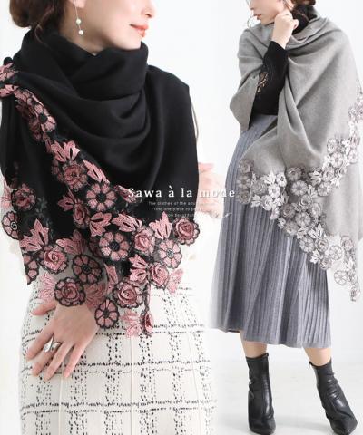 繊細な花刺繍レースの上質ストール