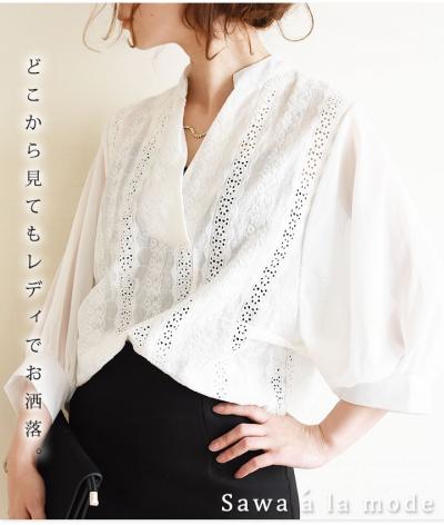 前後で着まわせる2wayオーガンジーボウタイブラウス