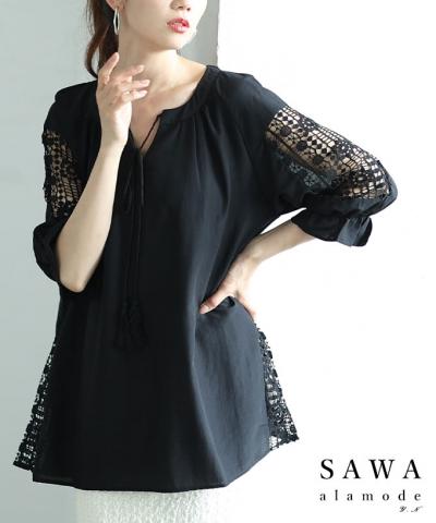 シックなモノトーンの胸元レースチュニック