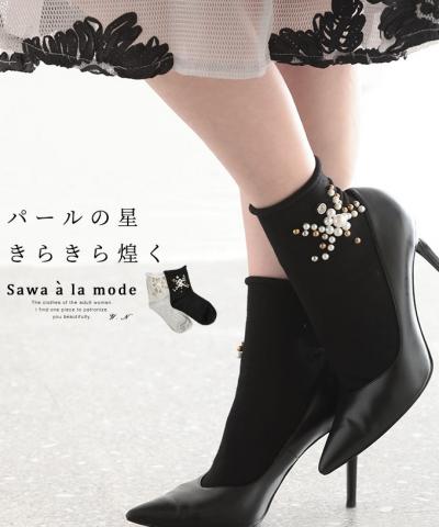 きらきら煌めくパールのショートソックス