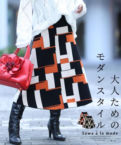 目を惹く花柄ラインのニットチュニック