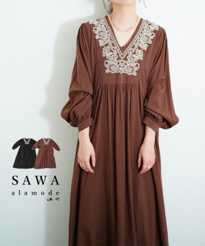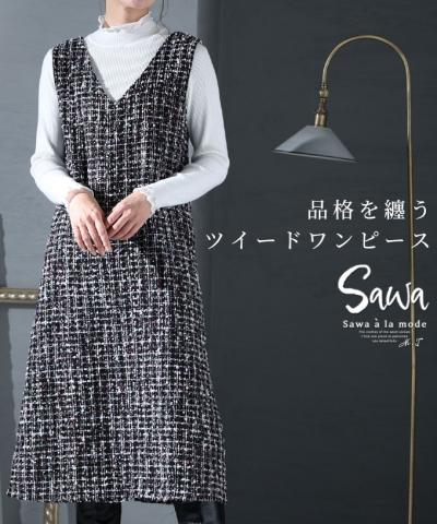 ほっこり素材で季節を感じるキーネックワンピース