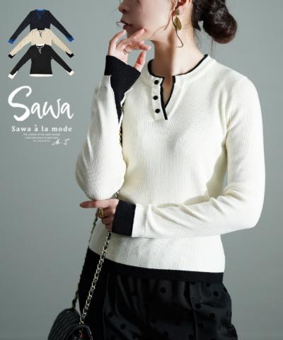 大人なモードさ漂う切替ジャガードニット