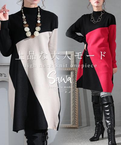 【低身長さんサイズ有】 スタイルアップするハイネックワンピース