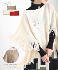 【イベントセール】 レディース 大人 上品 ビジュー付きフリンジニットポンチョ mode-9001