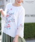 【イベントセール】 レディース 大人 上品 シフォンに咲く花刺繍のシャツブラウス【メール便可】 mode-9285