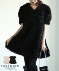 レディース 大人 上品 ふわふわシャギーのふんわり袖ミニワンピース mode-9835