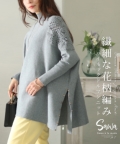 【イベントセール】 レディース 大人 モード 優雅なフェミニンを飾る花柄編みハイネックニット sawa-9121