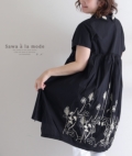 レディース 大人 上品 後ろ草花刺繍のふんわりコットンシャツチュニック mode-4925