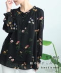 レディース 大人 上品 いろんな花々が舞うフリルネックチュニック【メール便可】 mode-9243