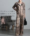 レディース 大人 モード レトロモダンな華を纏うニット地セットアップ sawa-9008