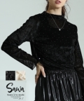 【イベントセール】 レディース 大人 モード 煌めくラインストーンベロアチュールカットソー【メール便可】 swjun-930s