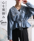 商品名 レディース 大人 モード ヴィンテージな甘辛スタイルスタッズデニムジャケット swjun-793s
