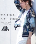 スカーフ柄のカーディガン、たしかに日本製では、この斬新さはありません。ワンプラスするだけで、ガラッと雰囲気が明るくなります。サワアラモードのお洋服は、とても花があり、気分がかわり着ていてテンションあがりますね