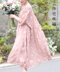 【低身長さんサイズ対応】レディース 大人 上品 キャミソール付き立体花刺繍半袖ワンピース mode-3339