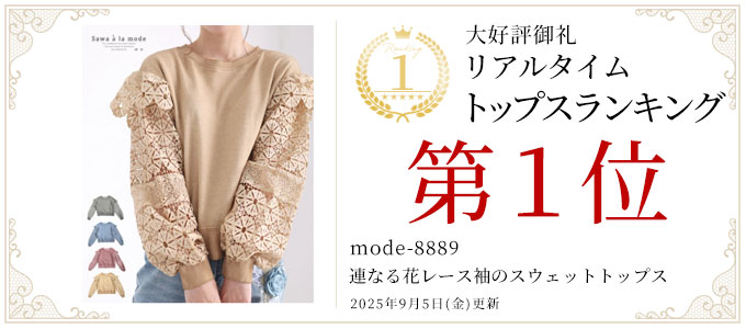 商品カテゴリ一覧 > 全商品 > レディース 大人 上品 連なる花レース袖のスウェットトップス mode-8889