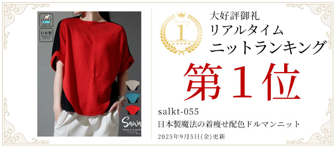商品カテゴリ一覧 > 全商品 > トップス > 【ウィンターセール特別価格】 レディース 大人 モード 日本製魔法の着痩せ配色ドルマンニット salkt-055